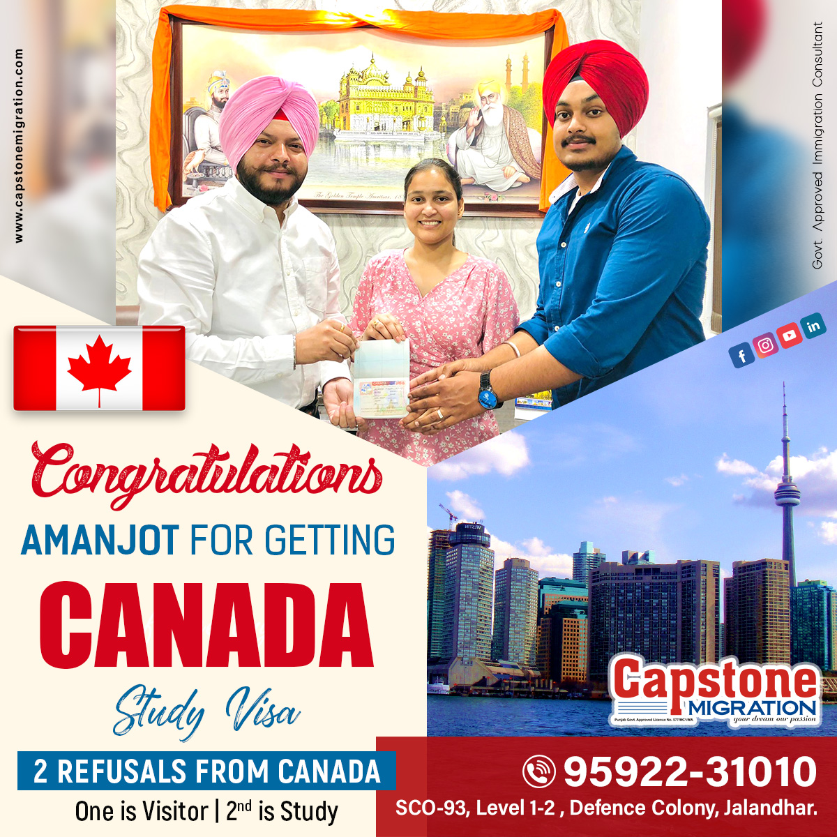 Capstone Migration, As the name suggests, Is an immigration firm, Based in the heart of historical city of Jalandhar. Company was launched with a clear transparent vision of providing compatible and true services to our clients wishing to pursue their studies in distinct countries around the globe. The services we offer include absolute guidance from start to the end of each and every case we handle. Our staff is well qualified, experienced, co-operative, helpful, down to earth, active, creative, innovative and above all willing to understand individual’s requirements and fulfilling them..